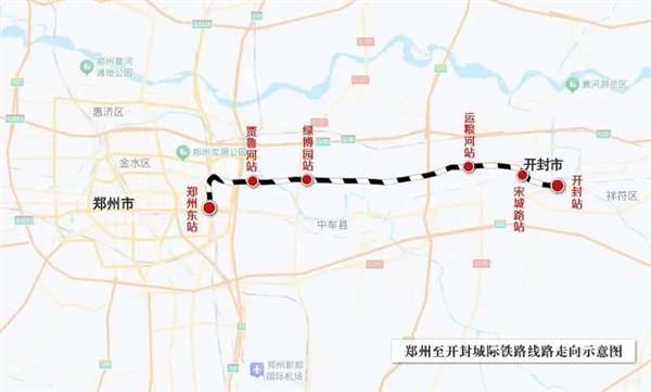 郑开城际铁路起自郑州东站,途经贾鲁河站、绿博园站、运粮河站、宋城路站接入开封站,线路全长57.14公里,设计时速200公里。