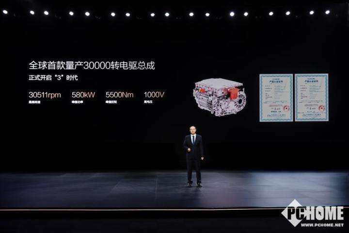 本次发布会,比亚迪还发布了全球首款量产3万转电机。比亚迪高级副总裁罗红斌在发布会上表示:3万转电机不仅实现了车速的大幅提升,还可以大幅度降低电机重量,缩小电机体积,提高功率密度,重新定义巅峰性能,引领电驱总成进入 “3” 时代。