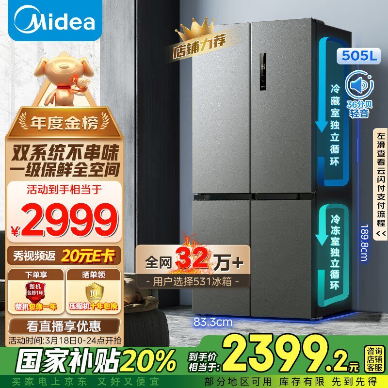 美的MR - 531WSPZE 505L冰箱仅需2168元