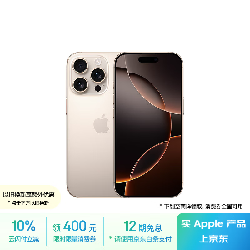 苹果iPhone 16 Pro 5G手机256GB沙漠色钛金属京东特惠7431元