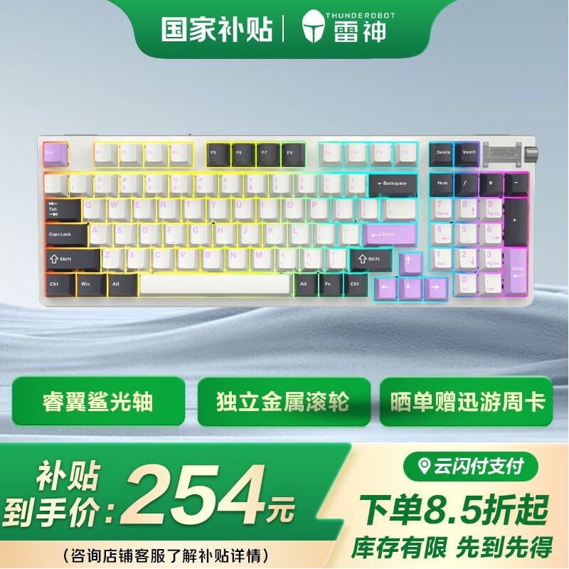 雷神T96暮山紫机械键盘光学火轴电竞游戏有线键盘