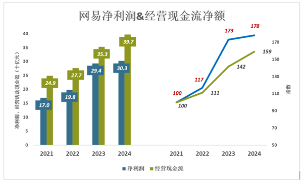 2024年,网易营收同比增长18亿,游戏业务对营收增长的贡献率超过100%。