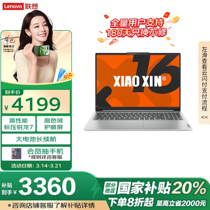 联想小新16轻薄本京东优惠,到手3334元