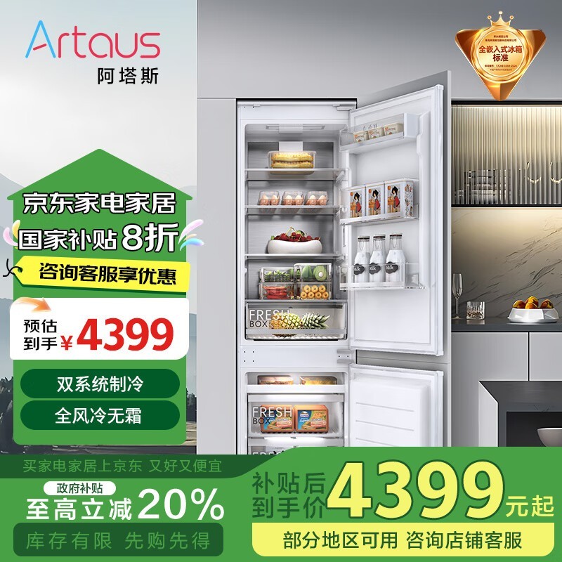 Artaus超薄全嵌入式冰箱:5499元享255L大容量,一级能效兼顾美学与环保