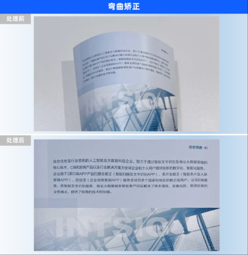 此外,弯曲矫正功能也能对装订成册的书籍或卷曲的纸张进行智能矫正,优化为如同扫描仪获得的平整图像,提升各类非常规载体文字的识别效率与质量。
