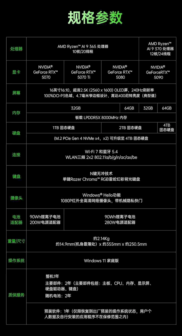 锐龙 AI 9 365、RTX 5080、32GB + 1TB版本售价24999元;
