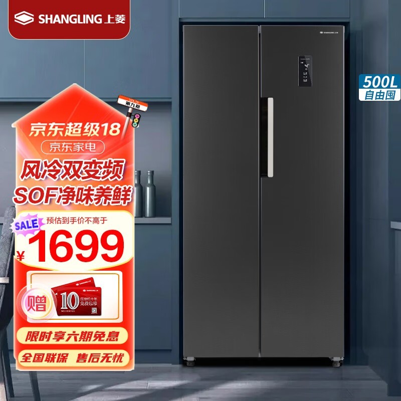 上菱BSE500PWL冰箱:风冷无霜,双变频静音,500升大容量,1699元高品质厨房理想伙伴