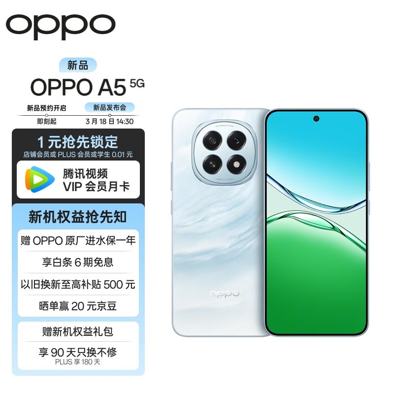 云母蓝新宠:OPPO A5 8GB+256GB,5G性能旗舰,3月18日新品发布会倒计时