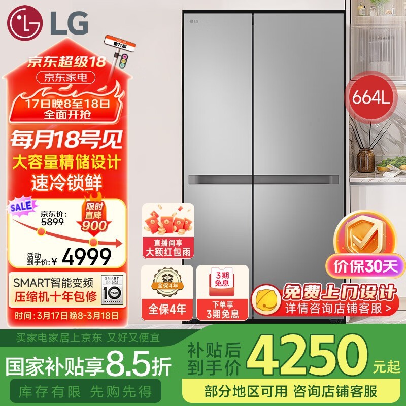 LG星河银664L无霜风冷冰箱:大容量、节能环保,现代家庭的理想储物伙伴