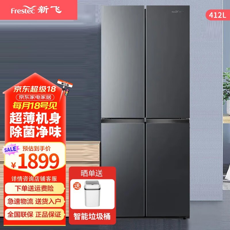 新飞超薄变频冰箱:412WK8AY,60.5cm高效除菌净味,大空间、低噪音,仅售1899元