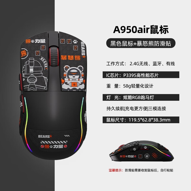 达尔优A950air:轻盈电竞鼠标,三模连接,防滑设计,149元畅享游戏办公新体验