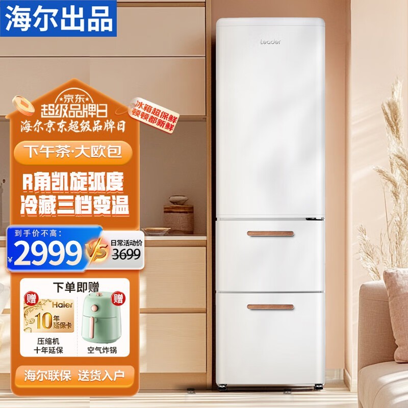 统帅LD3-321WL9:英伦复古风三门冰箱,净味除菌+节能设计,3599元优雅装点现代生活