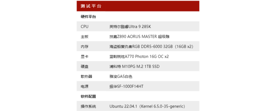 本次测试的平台是英特尔大全套,处理器是酷睿Ultra 9 285K。其实在这次测试中,CPU反而不太重要,拿颗酷睿Ultra 5也行。重点反而是主板,最好选一些两个PCIe 5.0 x8插槽的主板。