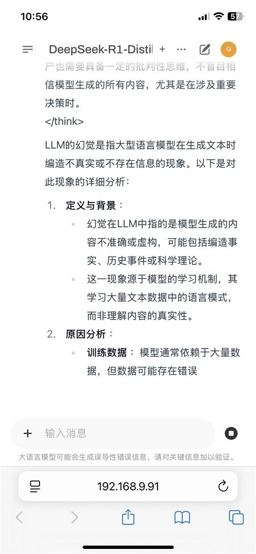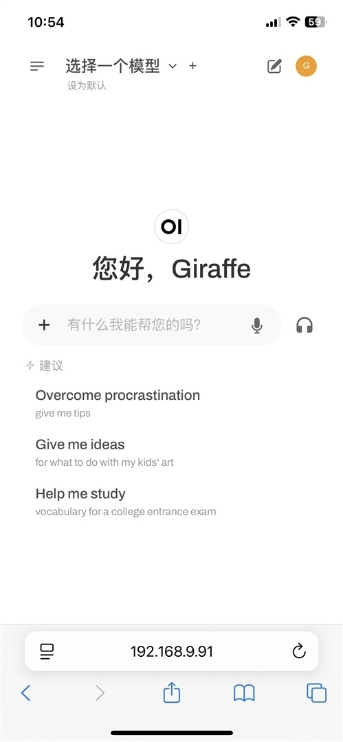 接下来的界面相信大家就很熟悉了,就和平时用的网页chatbot一样。只不过这一次所有的服务都运行于本地,不受网络波动的影响,拔掉路由器的WAN口也一切如常。