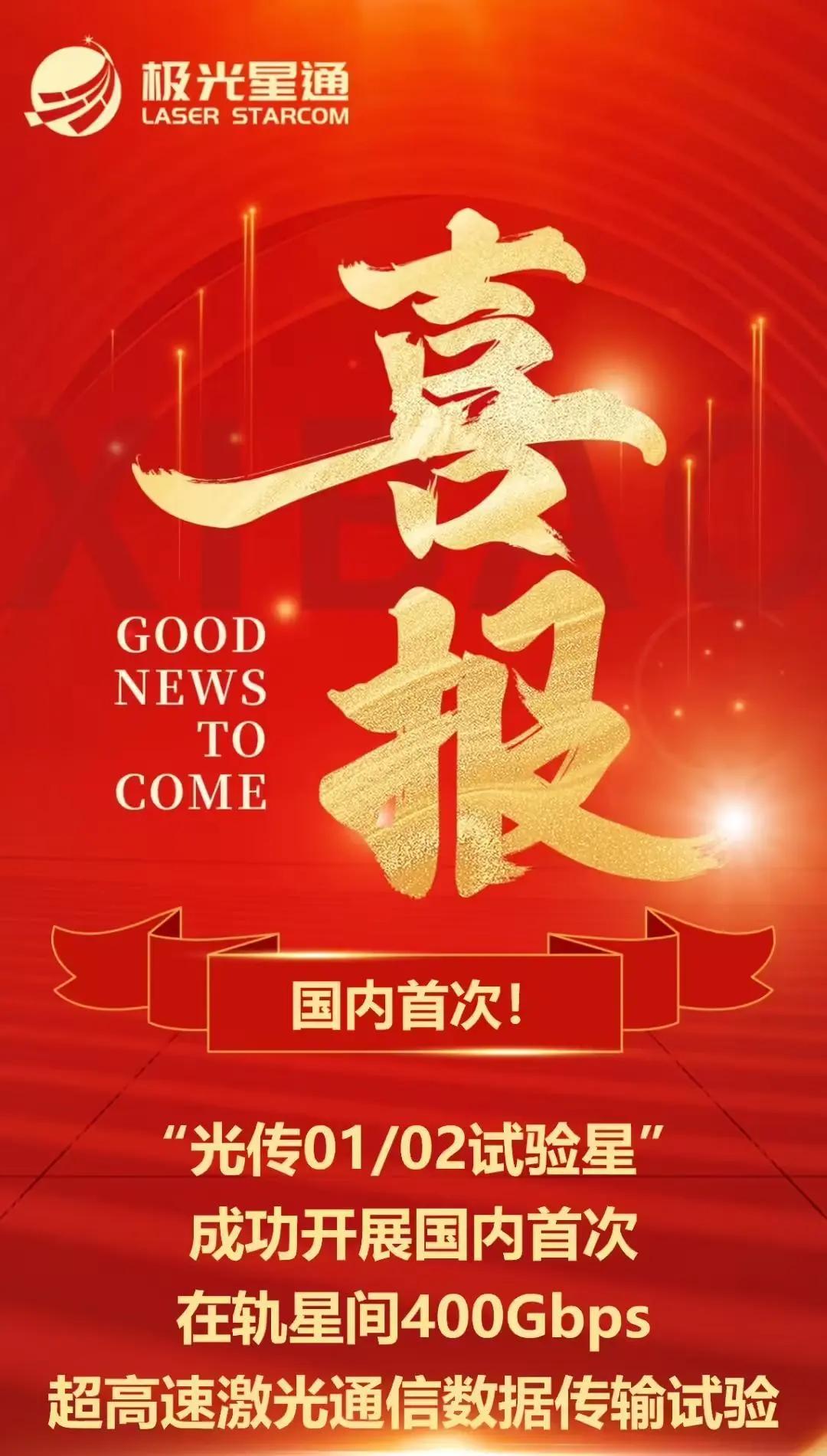 3月18日消息,今日,极光星通“光传01/02试验星”成功开展了国内首次在轨星间400Gbps超高速激光通信数据传输试验并取得成功。