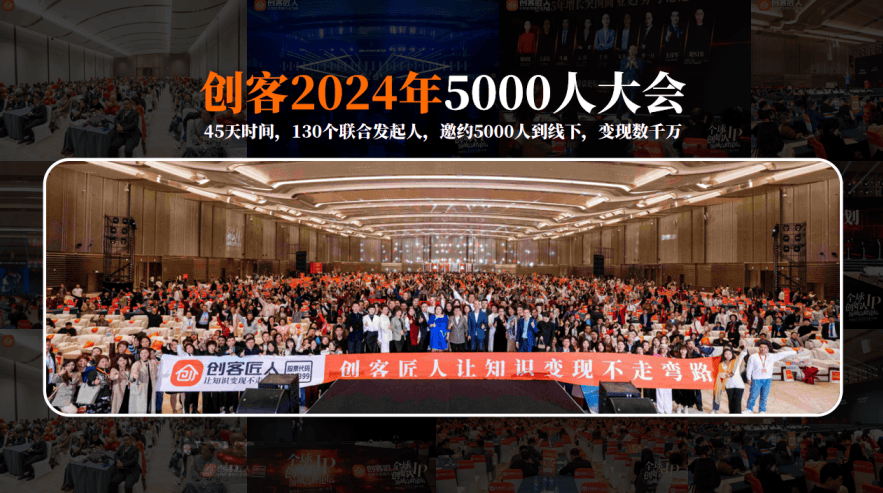 2024年“5000人创始人IP领袖高峰论坛”前夕,创客匠人首创推出“联合发起人”新产品,第一期即招募150位联合发起人,交付效果获得每位IP的一致好评。今年,创客匠人对联合发起人模型进行了优化与升级,将为创始人IP提供更为灵活的合作机会,享受更多的资源支持,借势增长。