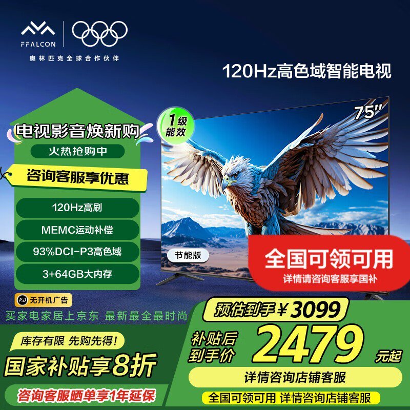 雷鸟鹏6 24款75英寸电视机京东超值优惠