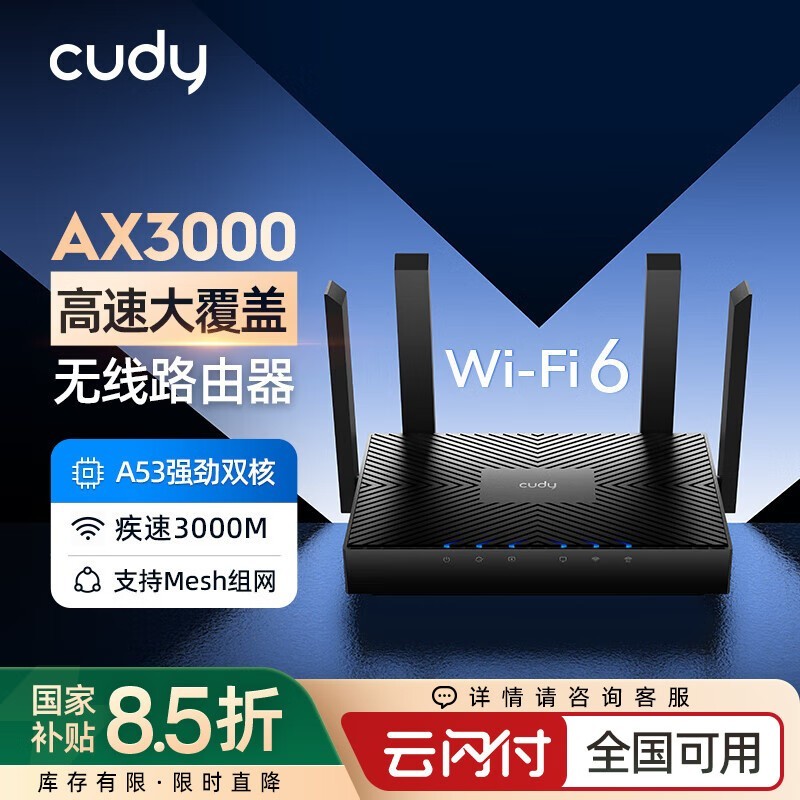 CUDY AX3000 WR3000路由器京东活动价92.94元