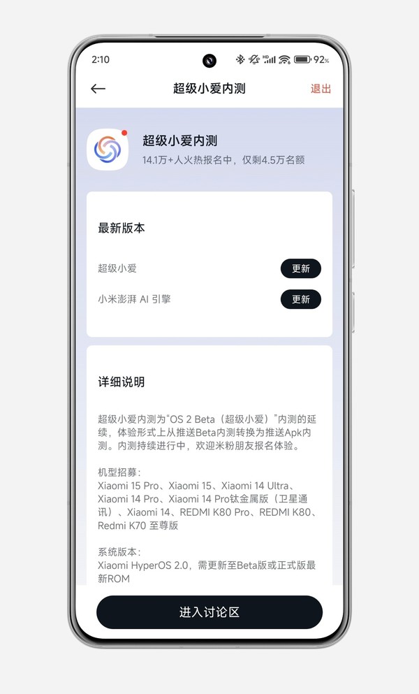 小米澎湃OS推送超级小爱内测更新 新增多项功能