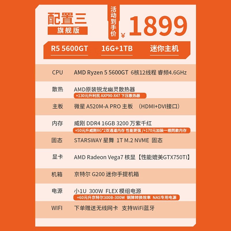 AMD京特尔迷你主机满减优惠券叠加到手1699元