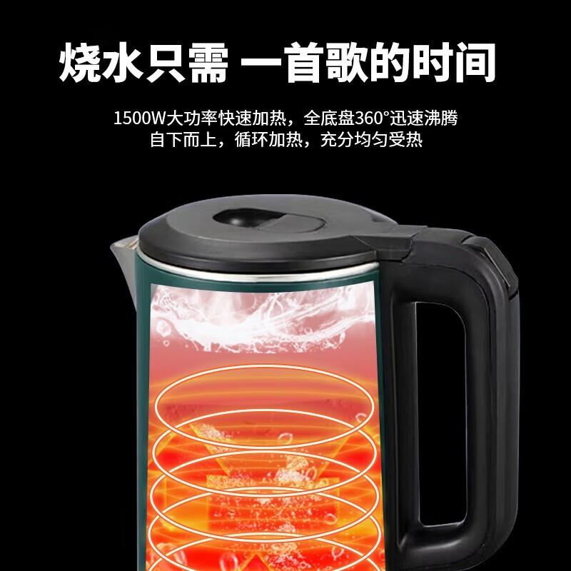 墨绿色威力电水壶,不锈钢2.5L大容量,买一送一仅4.9元!