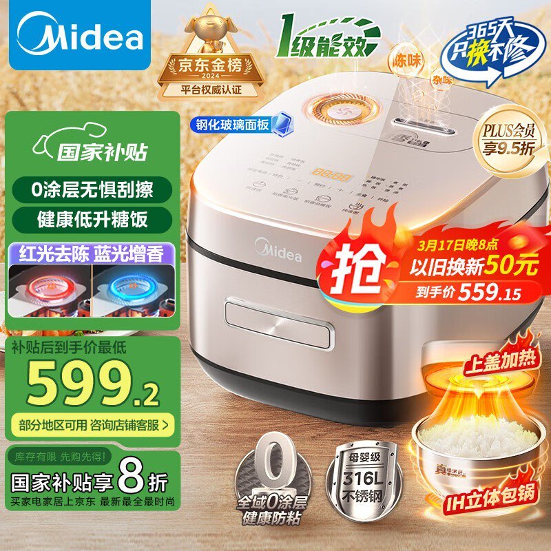 美的MB-HS453S IH电饭煲4升赤炎稻香0涂层内胆