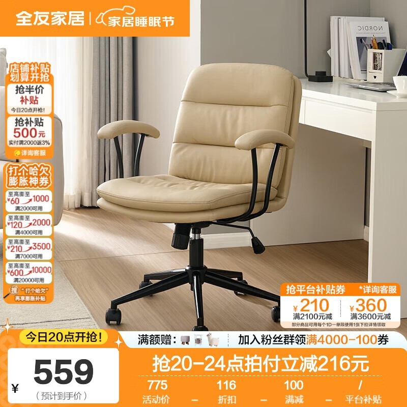 全友家居书房椅,原价775.29现559
