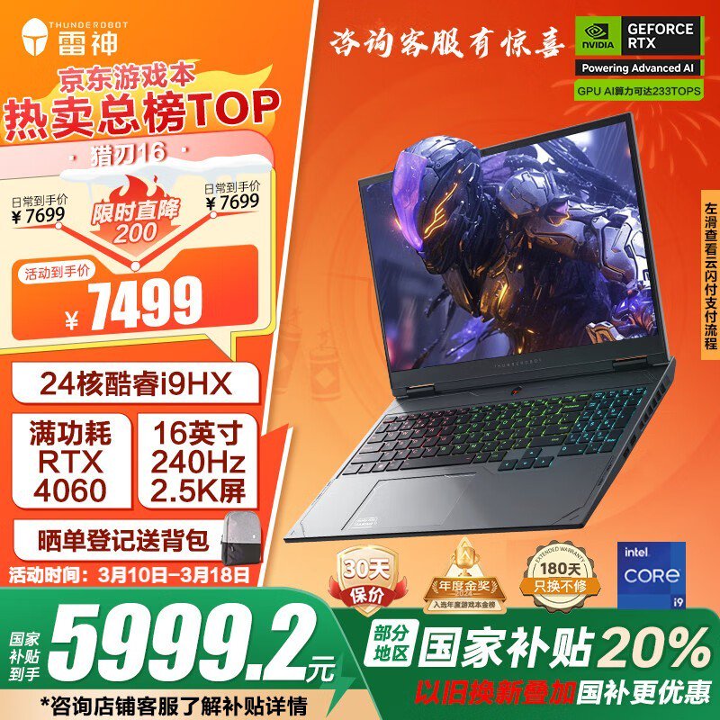 雷神猎刃16酷睿版游戏本|i9-13900HX|RTX4060|16GB|1TB