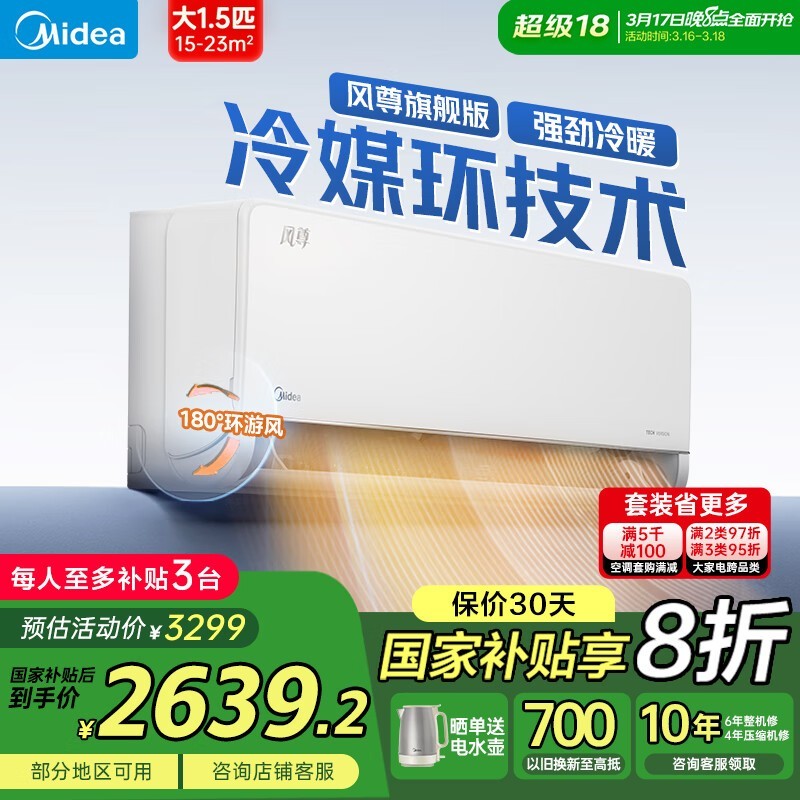 美的风尊系列大1匹空调优惠价2136元