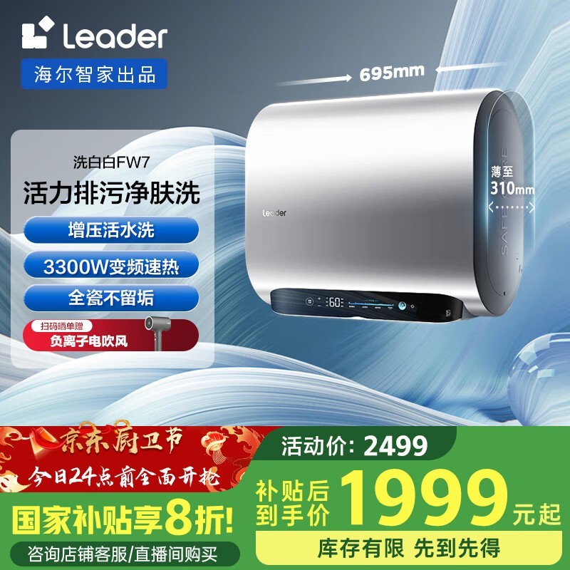 统帅60升电热水器双胆活水健康洗扁桶节省空间