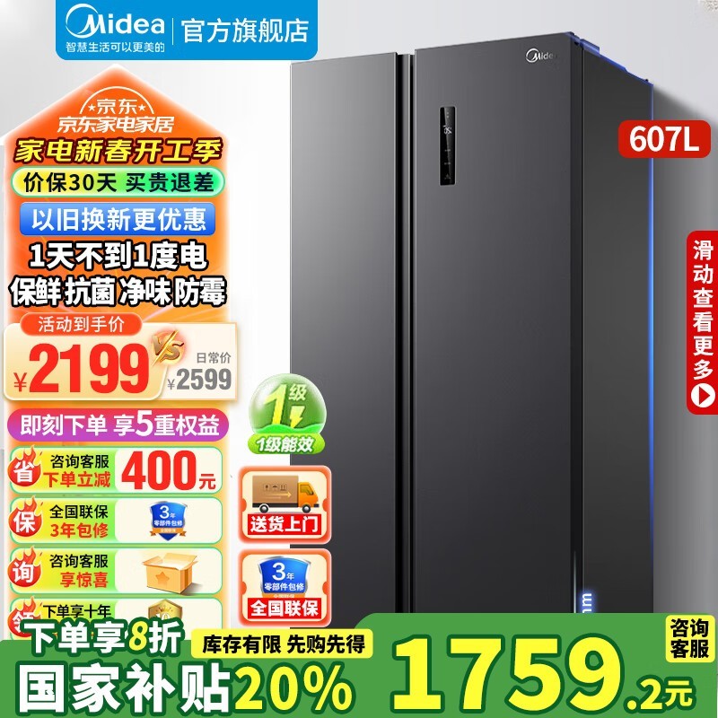 美的607升冰箱,多种优惠后到手1439元