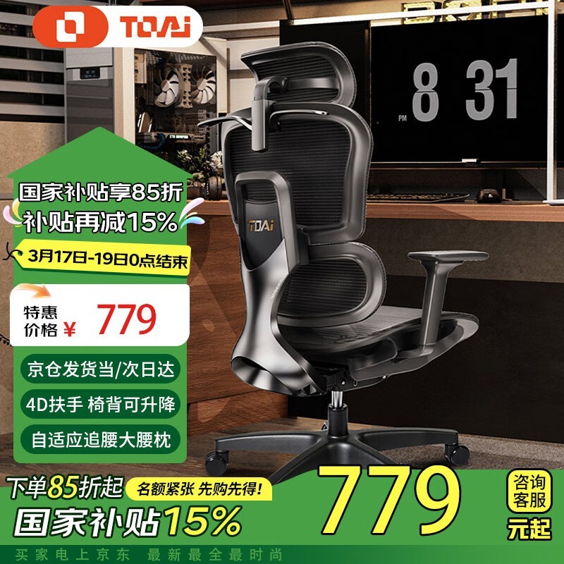 TOAI拓艾E1人体工学椅舒适健康久坐不累电脑椅黑色低配简约风格