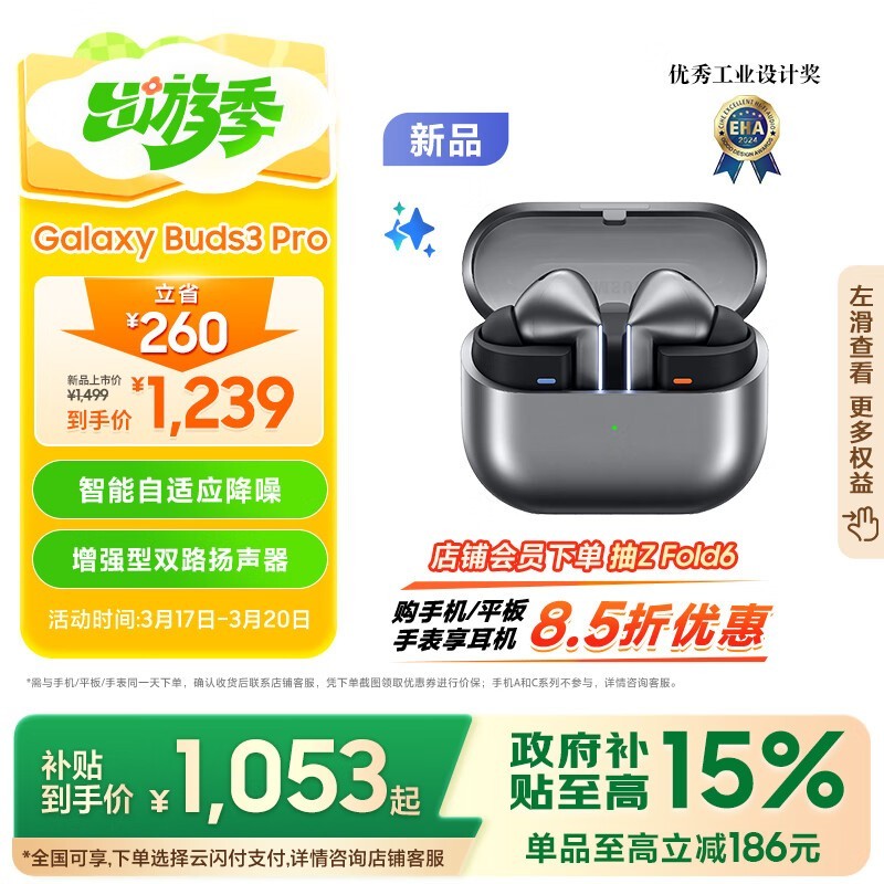 三星Galaxy Buds3 Pro蓝牙耳机促销到手价887元