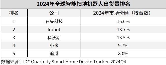 这标志着石头科技连续第二年在全球市场跻身销额第一,进一步巩固了其行业领先地位。