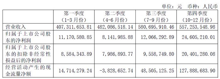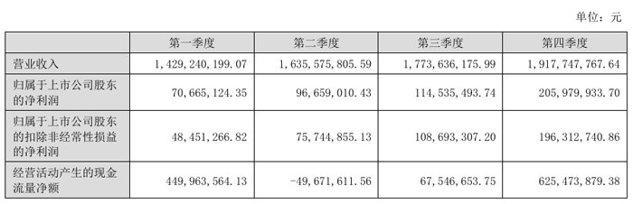 2024 年分季度主要财务数据