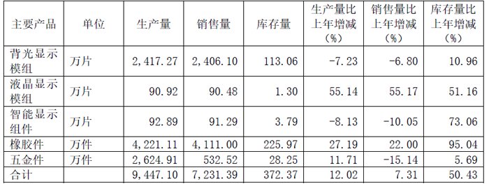 公司顺应车载显示产品大屏化、多屏化、异形屏的发展趋势,实现超大尺寸、曲面屏车载背光显示模组量产,且中、大尺寸显示产品销售规模持续增加;同时,公司积极布局Mini-LED技术,公司新型Mini-LED背光产品的定点项目已逐步进入量产阶段。