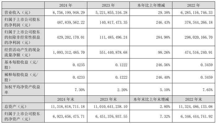 2024年度,蔚蓝锂芯实现营业总收入675,619.99万元,同比增长29.38%;实现营业利润59,693.07 万元,同比增长244.83%;净利润54,357.40万元,同比增长171.98%;归属于上市公司股东的净利润48,783.96 万元,同比增长246.43%。