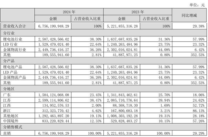 蔚蓝锂芯:总营收67.56亿,LED业务同增22.93%
