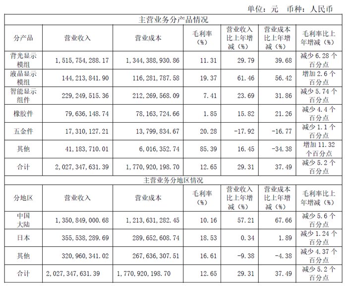 对于发展战略,年报表示,公司作为国内领先的显示模组制造企业,始终坚持以主业为发展核心,未来将继续巩固和提高现有主营产品的市场份额,全面推行精细化管理,在巩固和扩大与传统国外客户业务的基础上,布局国内车载显示市场并逐步形成规模。同时积极顺应汽车智能化、轻量化、电动化、网联化、共享化的发展趋势,深入挖掘市场机会,积极布局新兴业务领域,充分发挥公司的核心技术储备及产品开发优势,加大对新能源车载显示技术的研发投入,形成以车载显示产品为核心,数码相机、民用VR、游戏机等消费类产品共同发展的多元化产品结构,满足下游应用领域快速增长的市场需求,力争成为中国显示行业具有全球竞争力的规模化供应商。