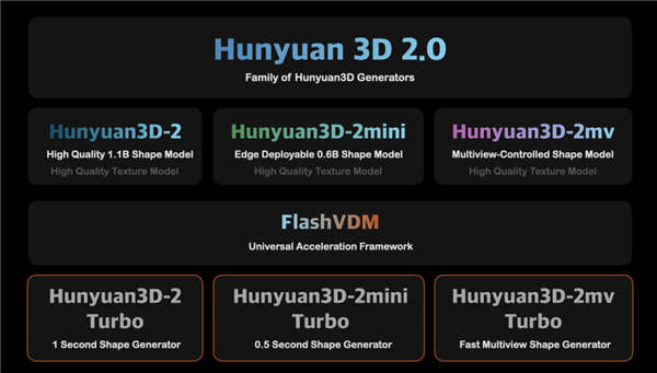 Turbo系列模型:在保证高精度和高质量的基础上,对几何生成模型进行了数十倍的加速,确保整个生成过程能够在30秒内完成。