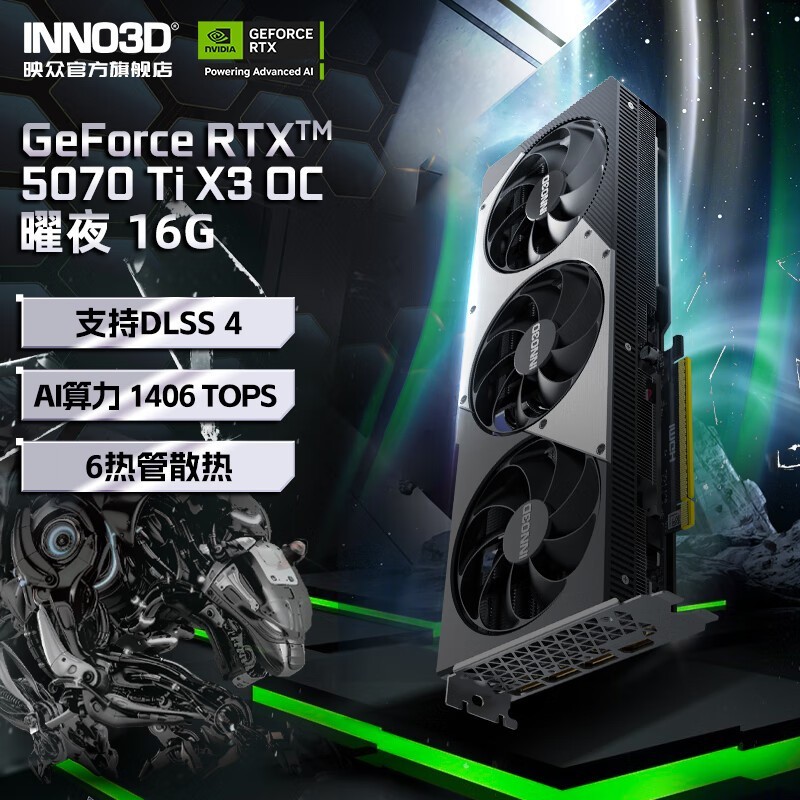 映众RTX 5070Ti X3曜夜16G显卡京东优惠价7099元