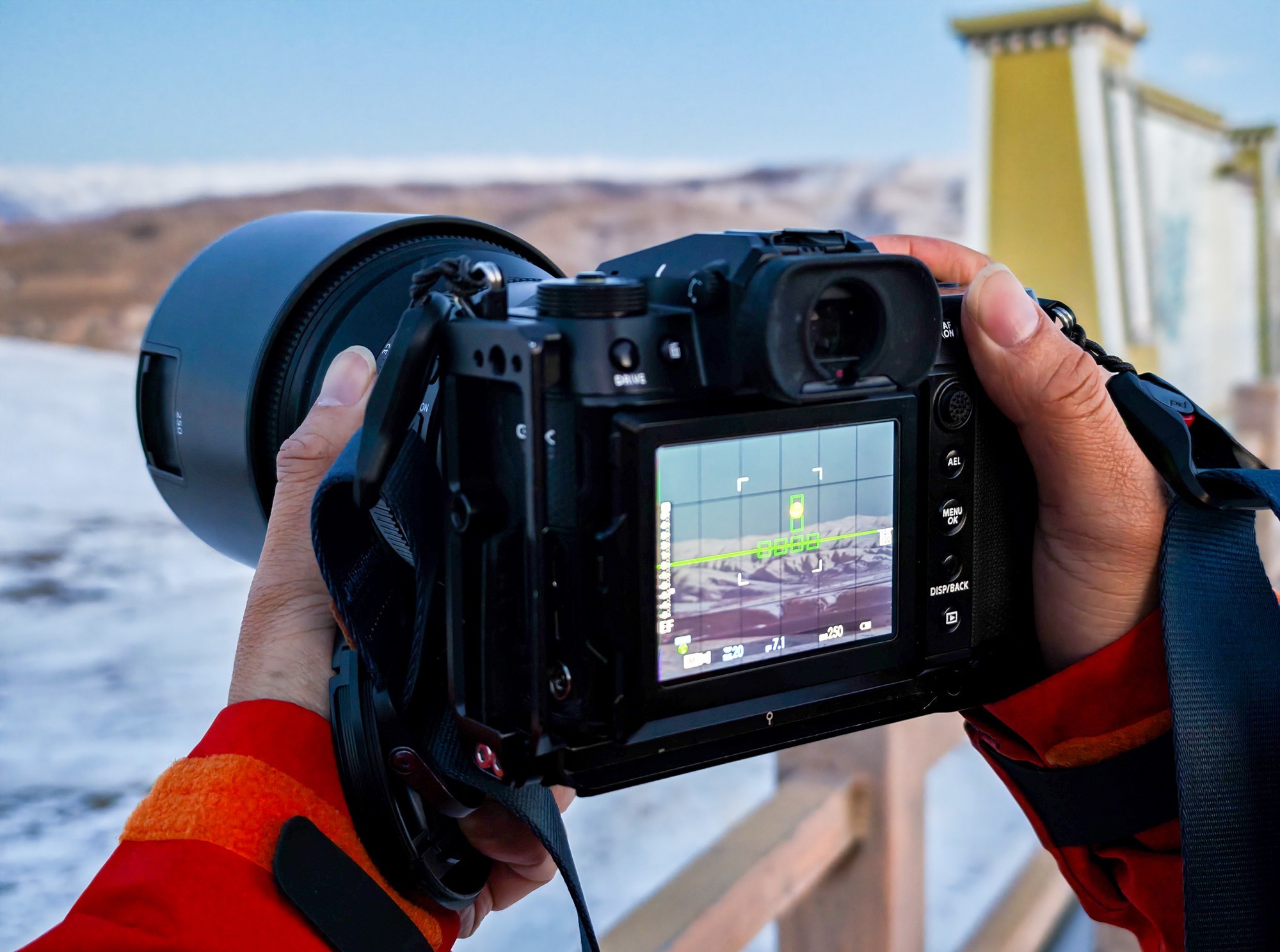 先来简单地介绍一下这次精心挑选的相机,富士GFX100SII。这台相机采用了1亿像素级别的中画幅传感器设计,它的传感器尺寸达到43.8mmx32.9mm,是常见全画幅相机传感器的1.7倍,在画质和解析力方面具备先天优势。在如此高海拔的地区旅拍,对体力要求十分高,好在富士GFX100SII机身加上电池和存储卡的重量约为883克,具备优秀的轻量化设计,让这次旅拍可以更加顺畅。