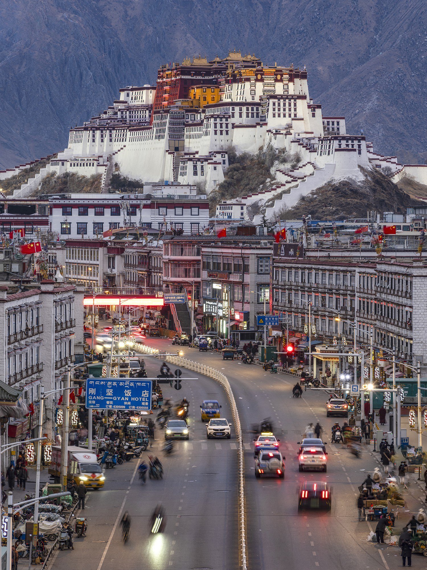 在拉萨的晚饭后在一个过街天桥上,我们使用GF100-200mmF5.6R LM OISWR记录了一张十分满意的布达拉宫城市景观照片。出门着急没有携带三脚架,因此我们选择手持拍摄。由于太阳刚刚落山,再加上长焦焦段,我们的快门速度已经低至0.8秒。不过富士GFX100SII具备最高8级补偿效果的防抖能力,即使这个快门速度也可以轻松通过手持拍摄来驾驭。