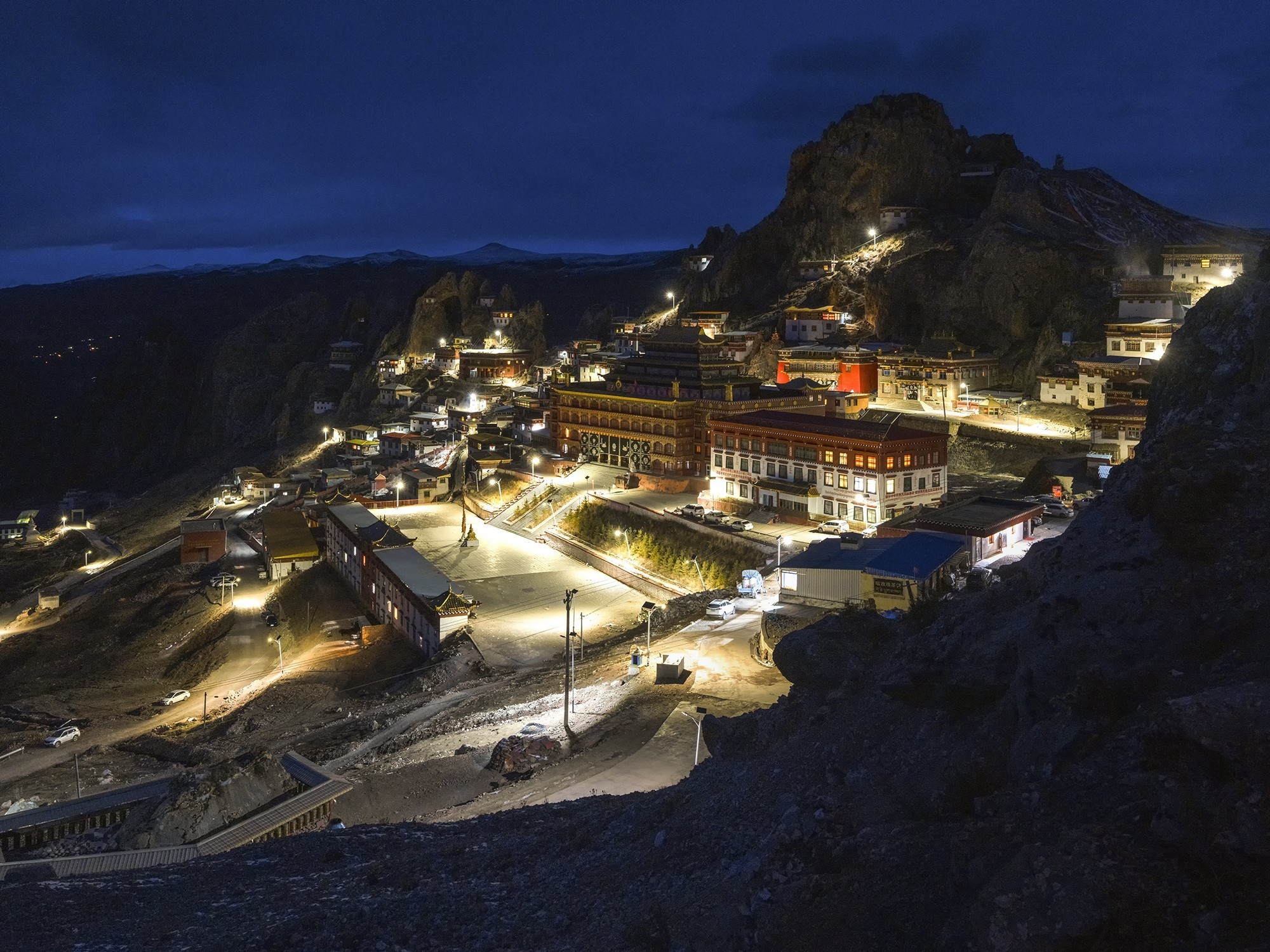 孜珠寺是这次行程中必打卡的地方,位于西藏东部昌都市丁青县著名的神山孜珠山上,海拔4800米左右,是西藏海拔最高的寺院之一,也是雍仲苯教最古老、最重要的寺庙之一。这里的夜景非常漂亮,也是重要的摄影打卡地之一。由于光线比较昏暗,因此我们使用ISO800搭配10秒长曝光的拍摄手法记录下这张照片。不得不说富士GFX100SII的高感画质很优秀,即使在高ISO长曝光拍摄下,画面的纯净度依然足够高,细节保留清晰完整,让照片具有足够的观赏性。