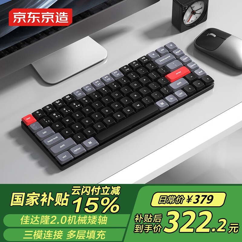 京东京造K3Max三模机械键盘太空灰306元到手