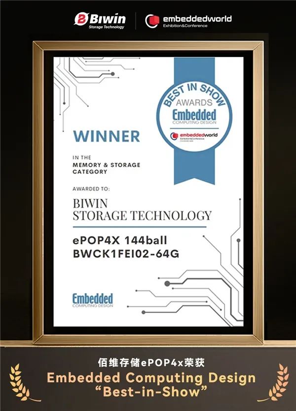 - 展出ePOP4x存储芯片(8.0mm×9.5mm超薄封装),集成32/64GB存储+2-4GB内存,读写速度300MB/s,低功耗设计,获“Best-in-Show”大奖。