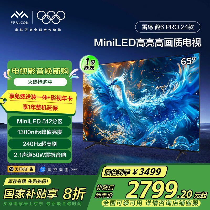 雷鸟鹤6 PRO 24款MiniLED电视65英寸促销到手2508元
