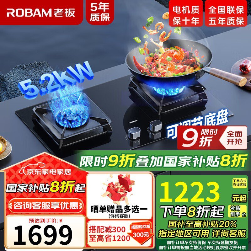 老板JZT-57B5X燃气灶,大火力高效节能,享国家补贴