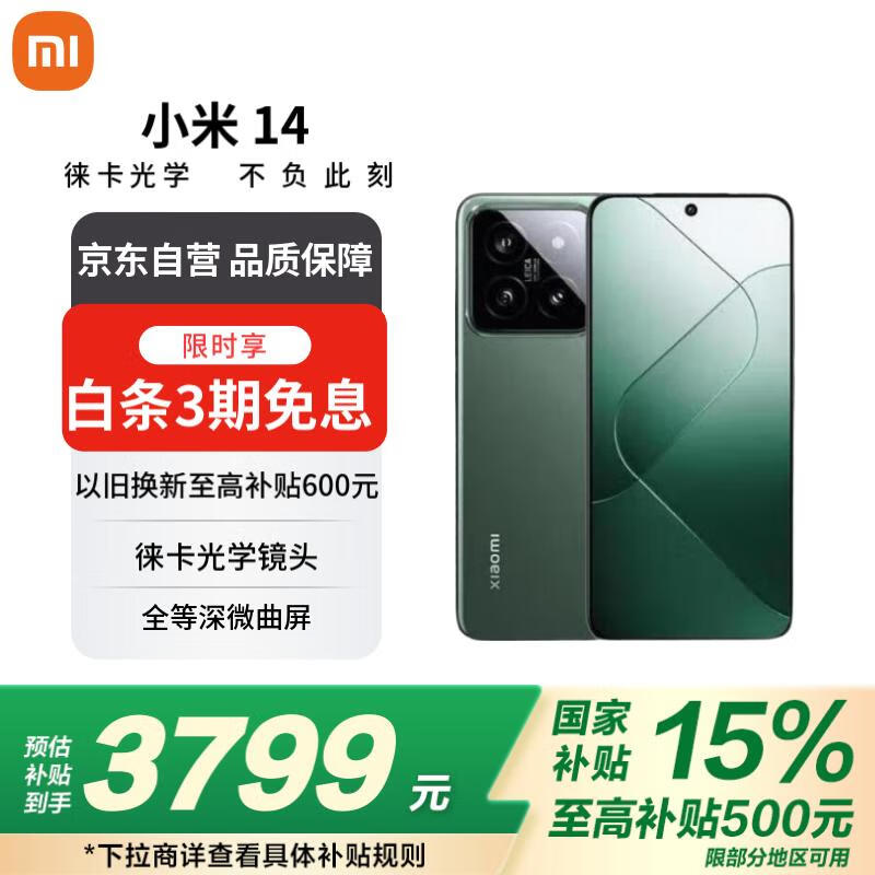 小米14 5G手机16GB+512GB版领券+补贴到手3579元