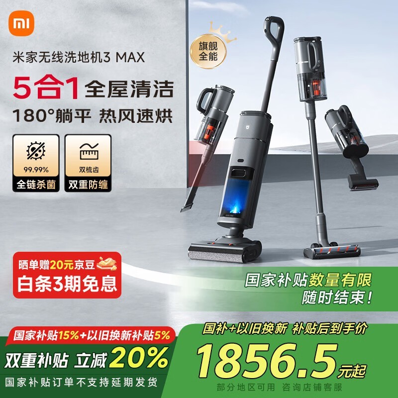 米家MIJIA无线洗地机3 Max京东优惠价低至1786元